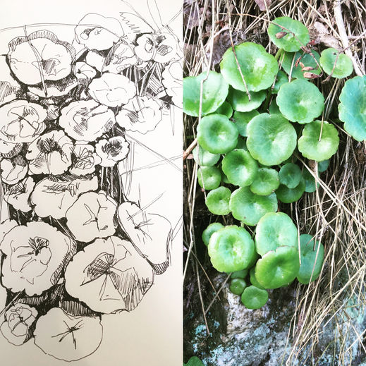 Pen and Water Colour and Pinch Pot Stoneware Clay.